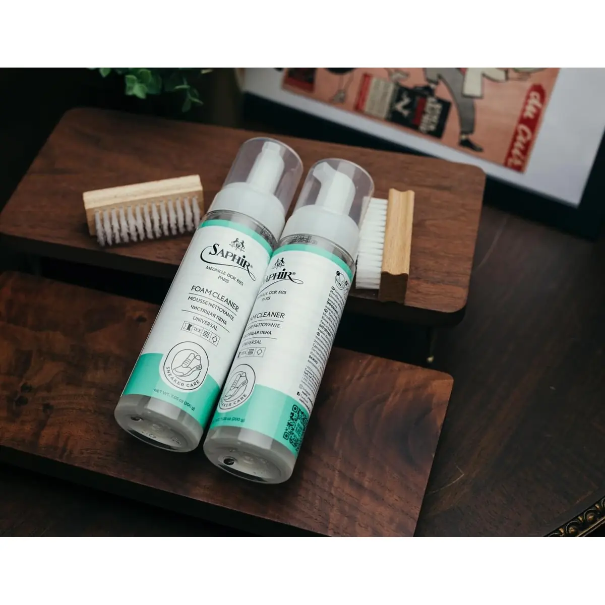- Shake and apply the deep cleaning cleaner to the dirty areas of the midsoles of the shoes either with a brush or using the special Saphir Medaille D’Or cleaning towel.