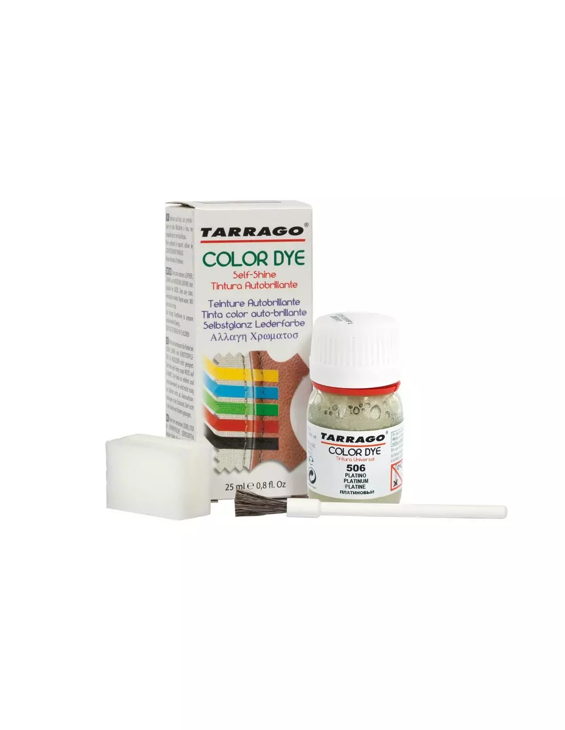 Box containing 25 ml / 0,85 fl.oz. bottle, paint brush, applicator sponge and instructions guide.