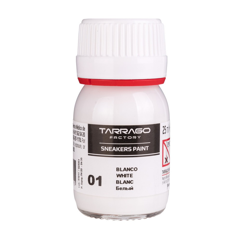 Tarrago Sneakers Paint is a water-based color dye specially formulated to change the color, customize or restore your smooth leather, synthetic leather or canvas sneakers. Thanks to its high concentration of high quality pigments, it has a high hiding power. It offers a high resistance to wet/dry friction and flexions, preventing the dye from cracking. Satin / Matt finish. To improve the strength of this finish, apply Sneakers Paint Neutral Base, and then the Sneakers Matt or Gloss Maker for matt o glossy finish. Fast drying 1-3 minutes.