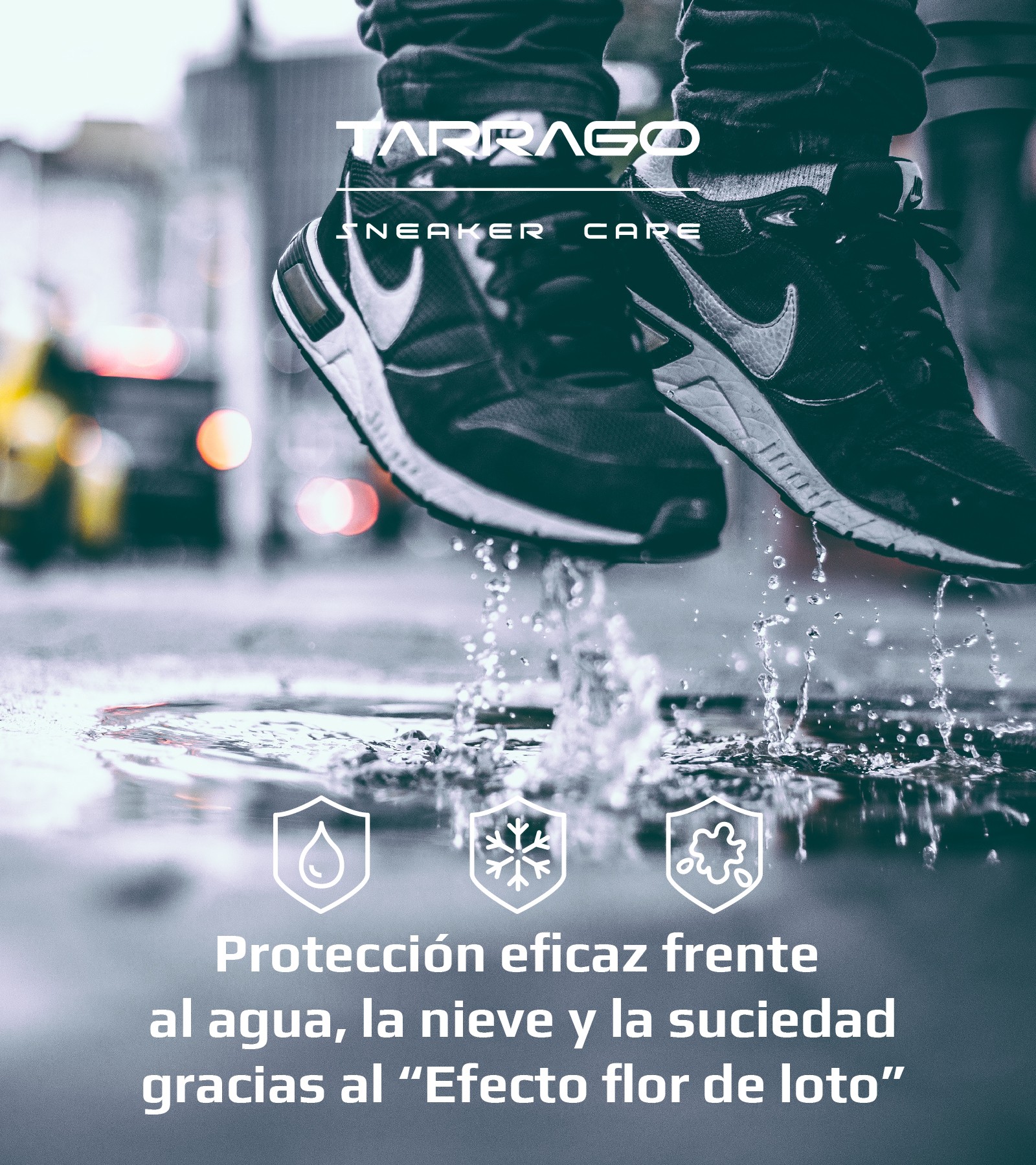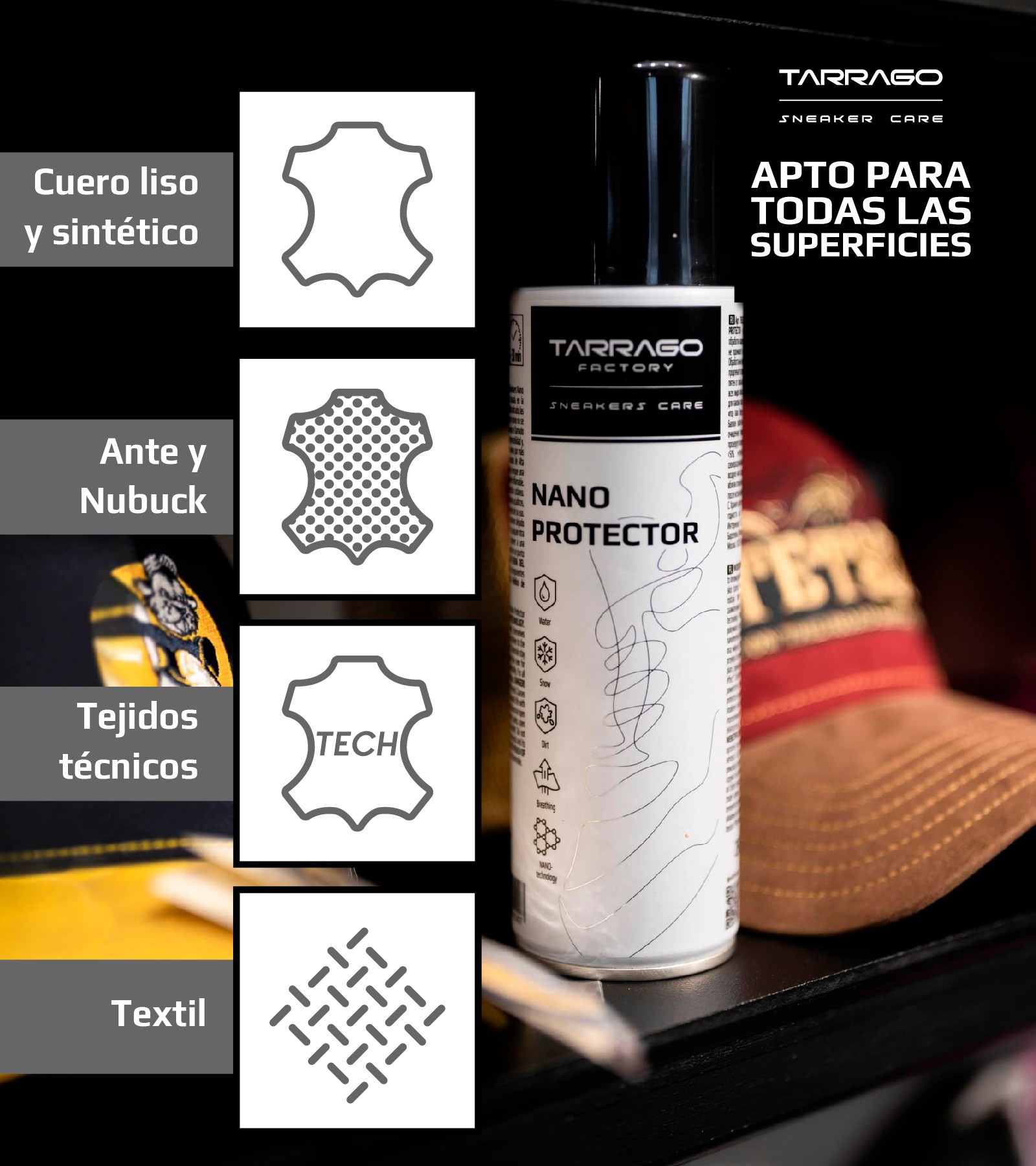 El Nano Protector Tarrago ofrece una innovadora protección de primera clase basada en la nanotecnología. Su fórmula, revolucionaria en el mercado, te permitirá proteger tus zapatillas de la nieve, agua o polvo, gracias a su efecto impermeable y repelente a la suciedad. Gracias a la mejora que hemos realizado en sus propiedades es apto para cuero metalizado y cuero sintético. Además, se puede utilizar en todo tipo de piel, ante, nubuck y fibras transpirables e impermeables de alta tecnología, como Omni Tech, Gore-Tex, Hyvent o Inner Plus.
