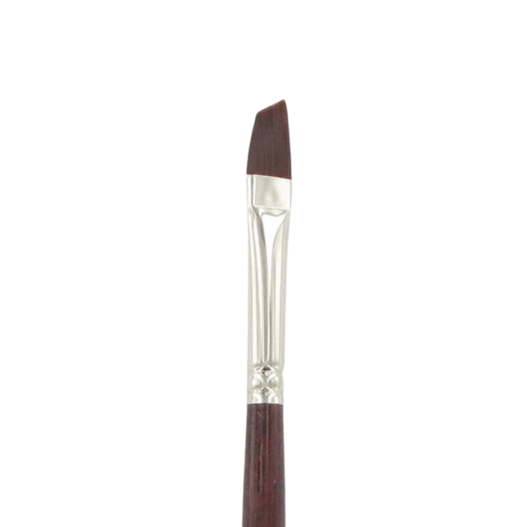 Pincel de fibra de color burdeos oscuro. Sus filamentos tienen grosores de hasta 0.14 mm. Concebido para acrílicos y óleos espesos o para pintar sobre telas de algodón y seda entre otras. Biselado para aplicar sombras y difuminar.