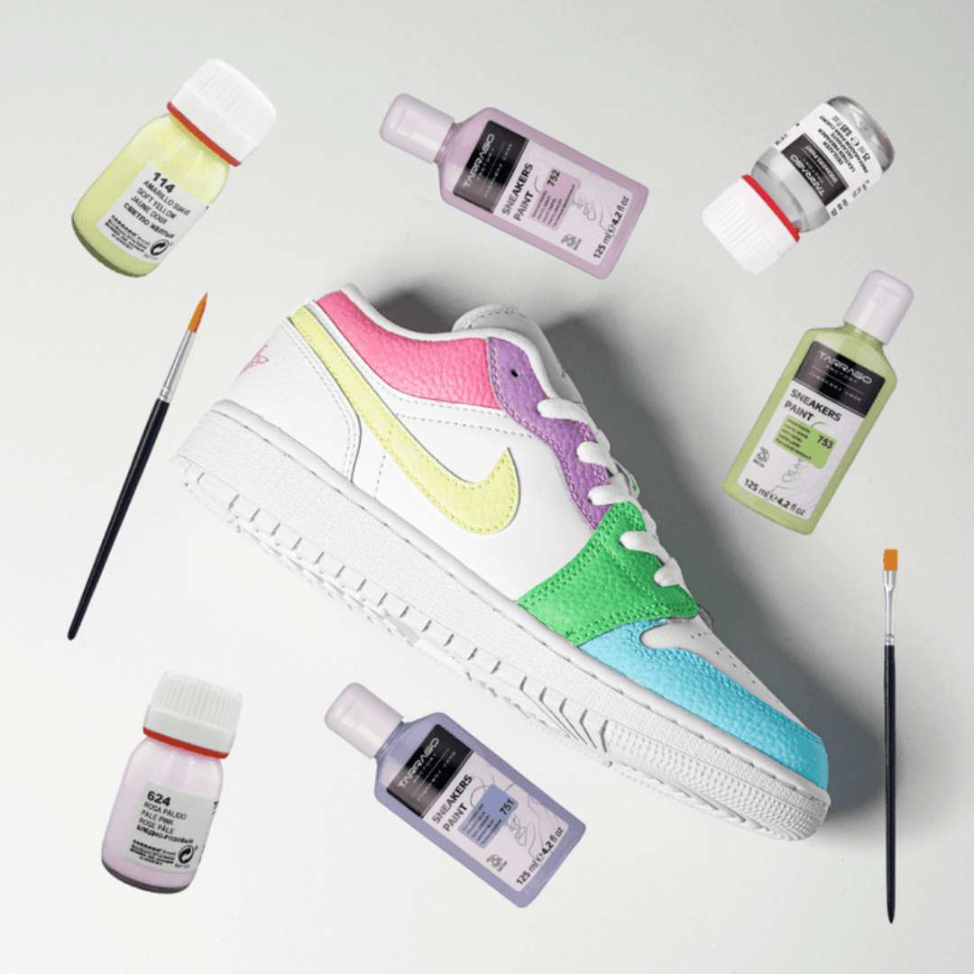 Tarrago Sneakers Paint es una pintura acrílica, con una fórmula a base de agua especialmente formulada para cambiar el color, personalizar o restaurar zapatillas de cuero liso, cuero sintético o lona.