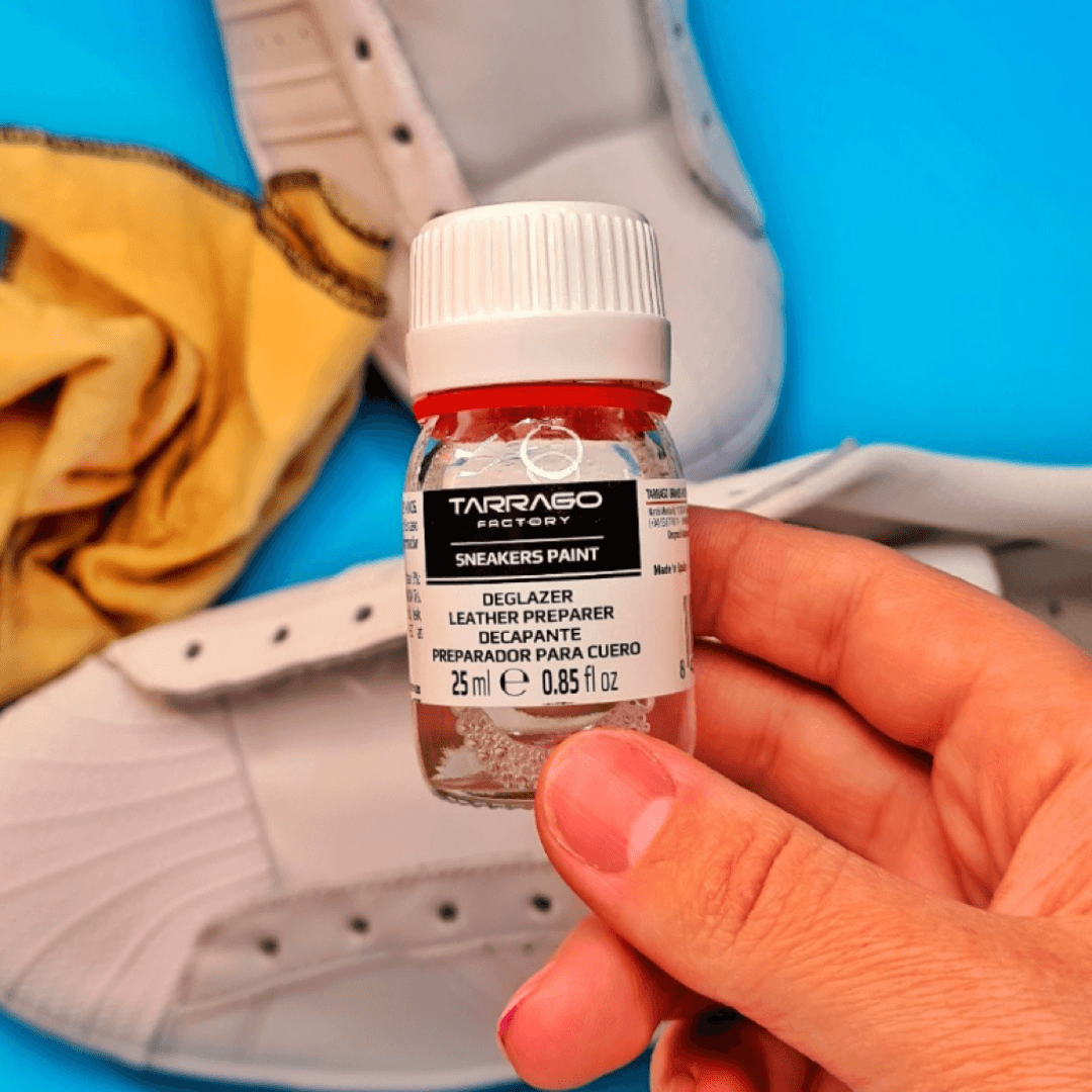 Tarrago Sneakers Deglazer prépare le cuir pour pouvoir le peindre sans l'abîmer. Élimine la finition de surface des chaussures (résines, cires, pigments, silicones, etc.) pour pouvoir peindre. Sa formule ouvre les pores du cuir, permettant à la peinture de pénétrer et de prendre parfaitement. Recommandé pour le cuir lisse et le cuir synthétique. Ne convient pas au daim, au nubuck et au cuir verni.