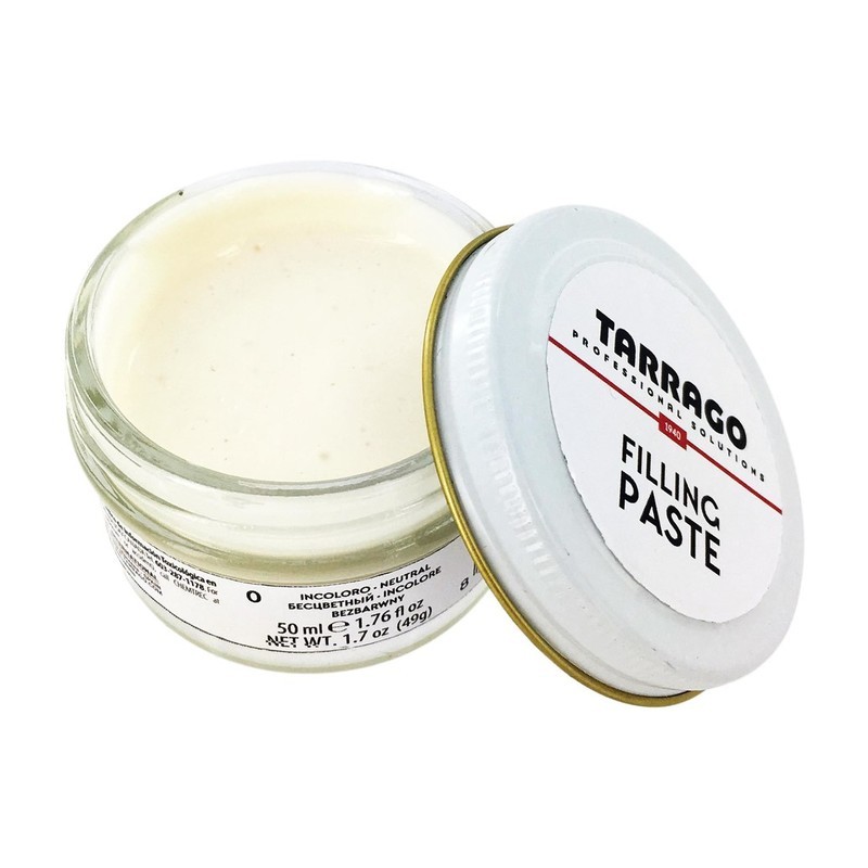 Pâte de remplissage pour couvrir les rayures et les coupures sur le cuir lisse, le cuir synthétique et également sur les semelles en caoutchouc. Ne convient pas pour le daim et le nubuck.